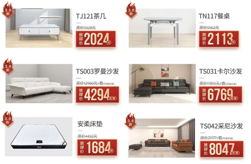 皇朝乳胶枕*2+TSO11三人位沙发*1+TS011妃位沙发*1+TJ117茶几+TN121餐桌+TR019(TR019-1)餐椅*4+TA03-A168-S床架*1+1.8米安柔床垫*1