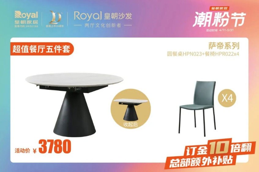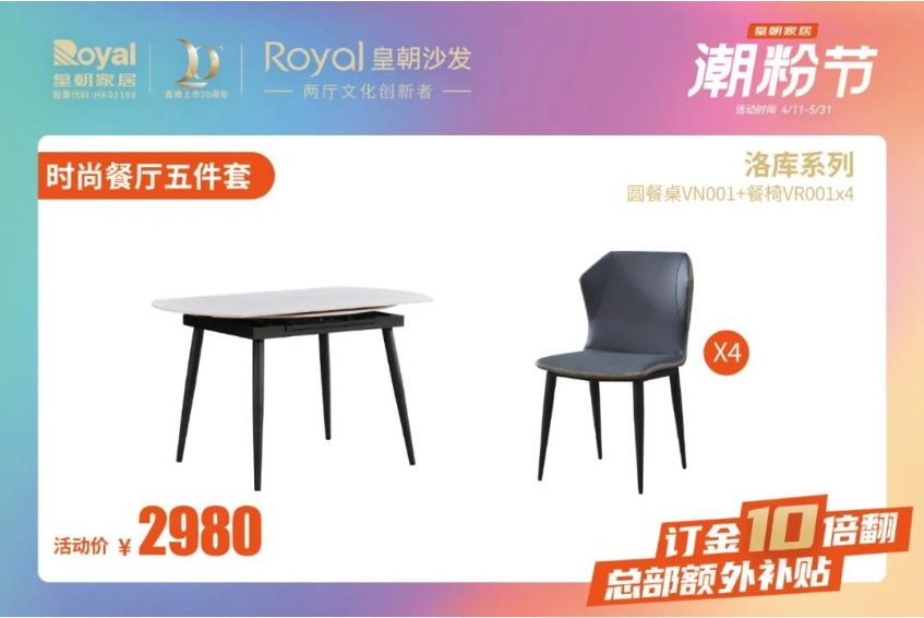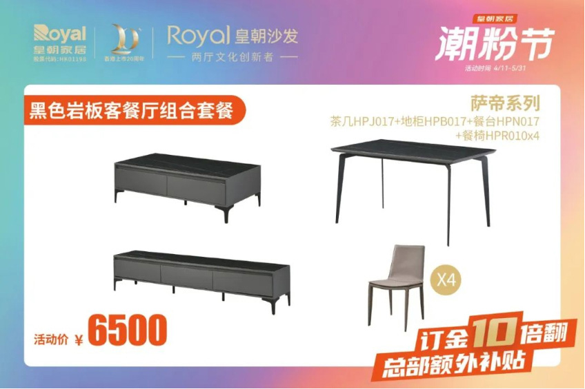 让人激动到捂不住钱包的皇朝家居“潮粉节”终于来啦!即日起到5月31日,爆款家具价格直降,实付满赠好礼送不停,还有总部额外补贴,领大额抵用券,订金10倍翻!让你用最划算的价格拿下最满意的宝贝!
