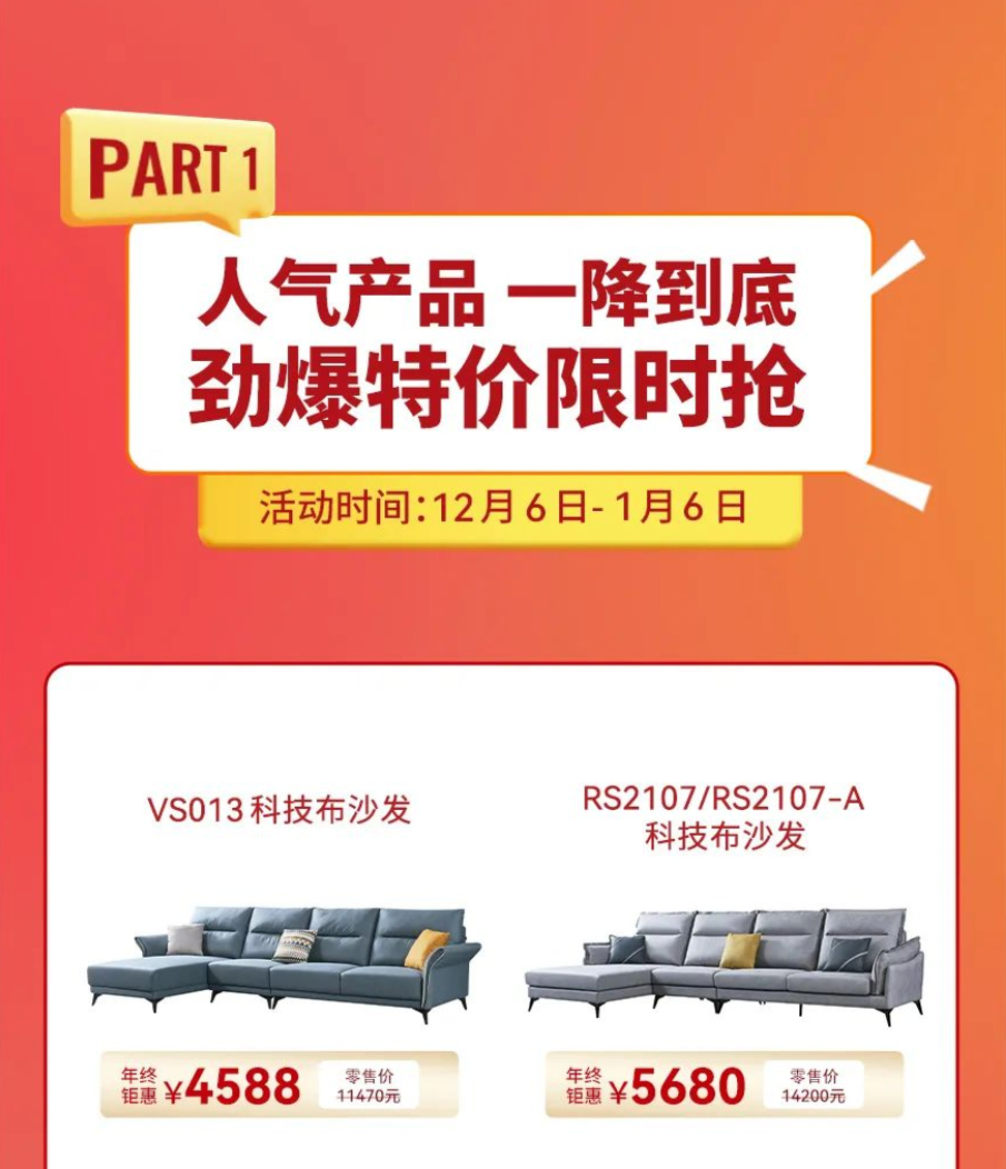 皇朝沙发焕新节,年终大钜惠!双十二继续给“利”