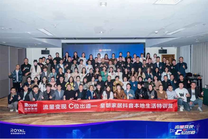 其中,布局抖音本地生活营销,抢占公域流量市场,打通线上线下经营链路,激发终端生意新增量,是皇朝高端整家定制逆势破局的重要探索。除了安排相关培训让经销商伙伴们掌握抖音运营底层逻辑和核心技能,皇朝还会开展为期28天的线下辅导式陪跑,终端在导师团手把手的指导及总部投流支持下,实践抖音本地生活变现全过程,实现精准获客、高效转化。