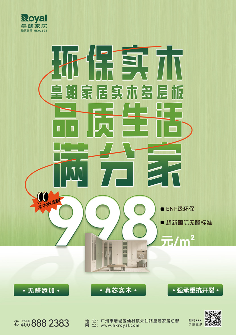 双节全屋定制特惠第一重,衣柜仅需998元/m²(按投影面积),橱柜998元/m(延米)即可定制环保等级远超新国标无醛标准ENF级的实木多层板柜体!尊享全屋6大空间柜体任意定制,还有9款花色任您自由搭配。皇朝家居ENF级实木多层板具有超环保、强承重、耐污、抗干热等特点,每一层都精选真芯实木,确保从源头上为您打造健康、安全的家居环境。皇朝家居以高品质、高颜值、高性价比柜体提高你的家居颜值!