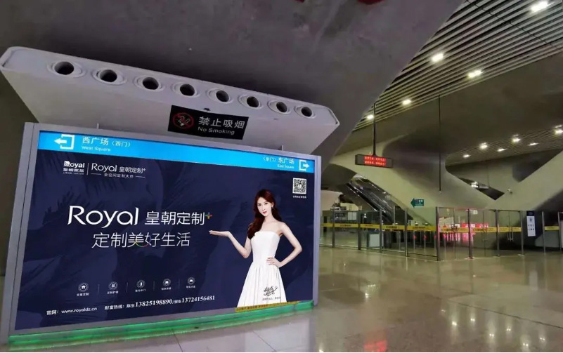 也是在今年开始,皇朝定制与各地终端门店一起加大了广告宣传的投入,更是正式启动高铁广告投放计划,携手国际巨星林志玲小姐,霸屏高铁枢纽站。