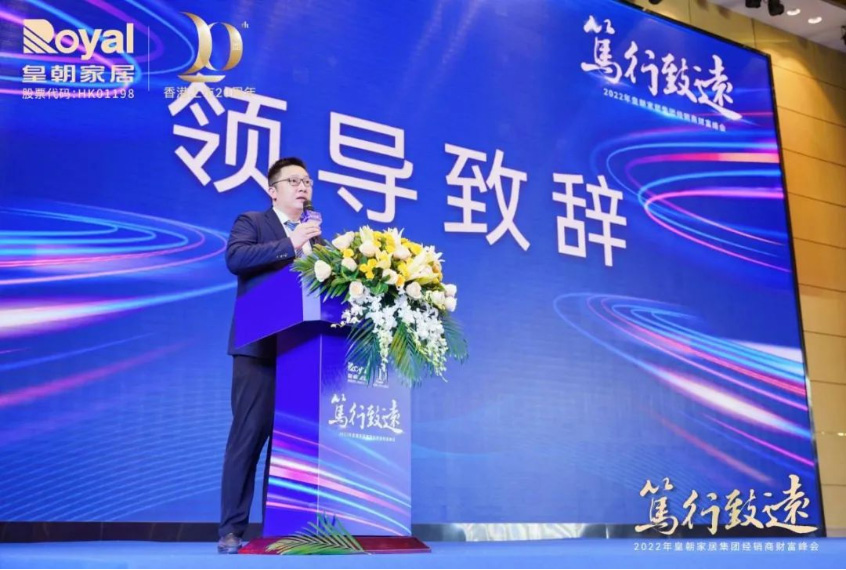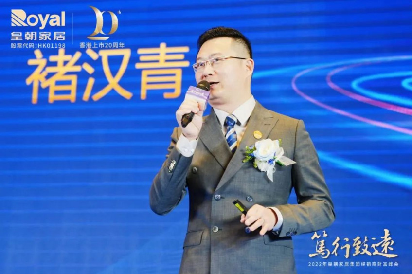 褚汉青先生首先带来2022年皇朝大家居战略发布,他从矩阵式品牌力、专业化产品力、精准化营销力、多元化渠道力、网状式交付力诠释皇朝家居2022-2024年的全新布局,最后褚总以“笃行致远,惟实励新”八个字总结了此次峰会的主题。