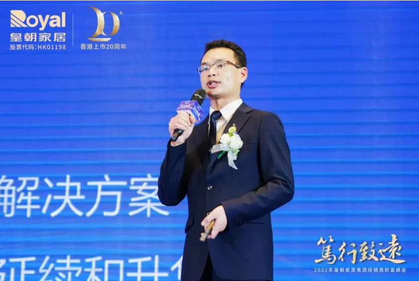 Royal皇朝潮流家居销售总监朱栩先生带来了2022年营销政策规划。旗下米奢与博睿两大系列是对皇朝家居“潮流家居美学家”的生动诠释。朱总以极致性价比、全品类配套、多渠道赋能、成熟团队、强大的开发能力、营销优势概括皇朝家居的核心竞争力。
