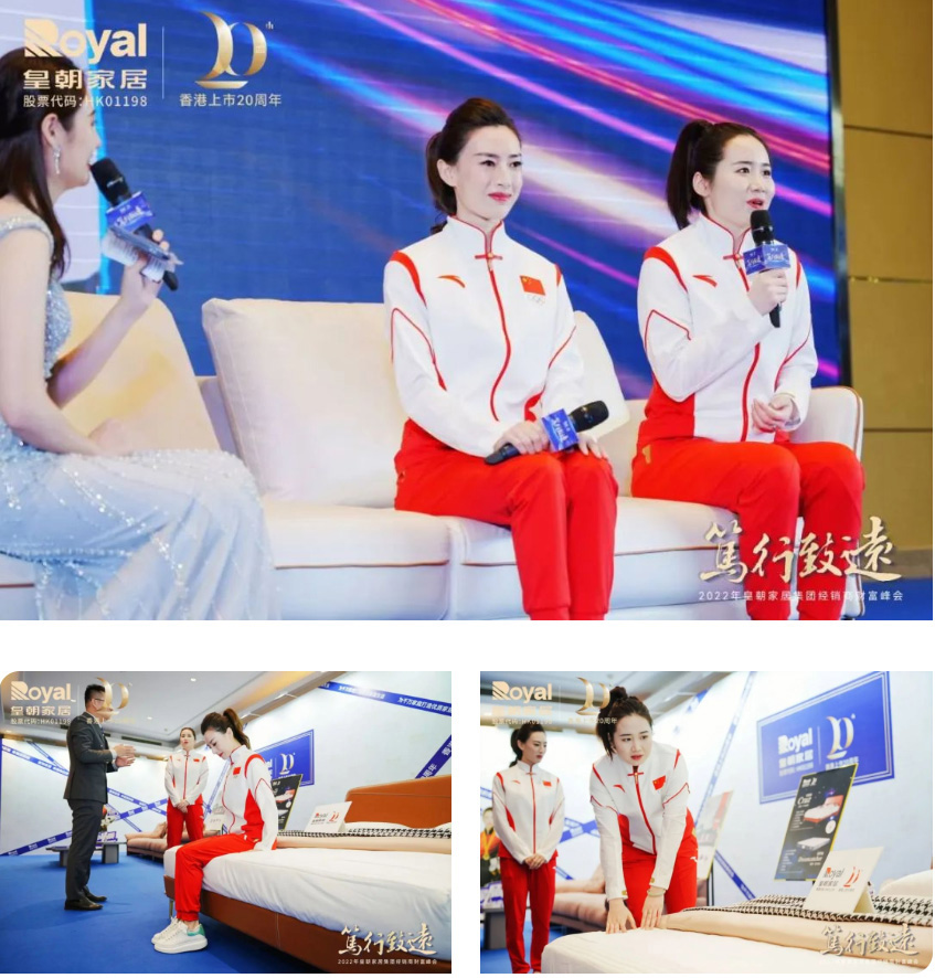 在峰会现场,皇朝家居更重磅邀请到两位世界冠军孔雪与赵楠楠现场助阵。皇朝家居屡次与国际体育赛事结缘,先后赞助2008年北京奥运会与2011年深圳大运会等,积极传播阳光、积极、健康的体育精神,向世界展示中国家居制造的力量。此次两位世界冠军不仅体验了皇朝家居品质产品,也共同开启了“皇朝家居冠军品质中国行”启动仪式。