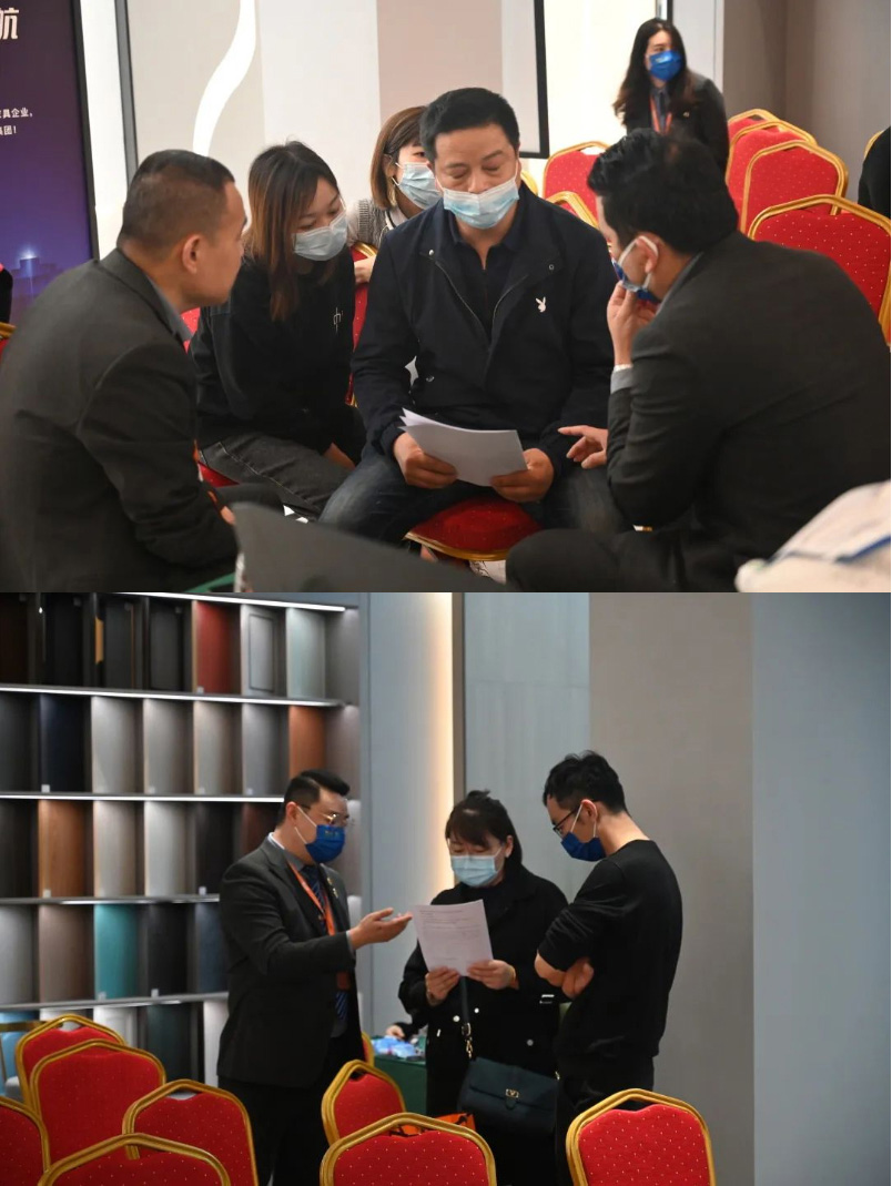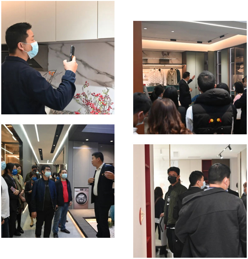 在皇朝定制团队的带领下,建材行业精英漫步在皇朝定制展馆中,品鉴家居新品魅力。