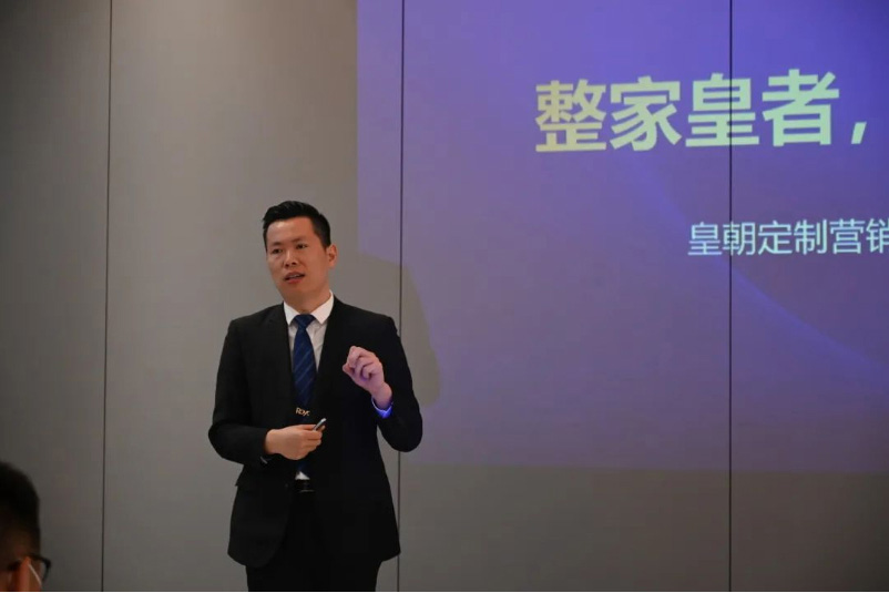 皇朝定制营销总监袁丹先生为本次大会致辞并发布整家定制新模式。