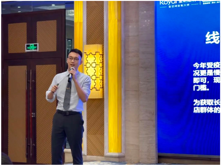 皇朝定制招商总监陈杰先生为现场嘉宾讲解皇朝定制项目优势,并现场公布财富政策。
