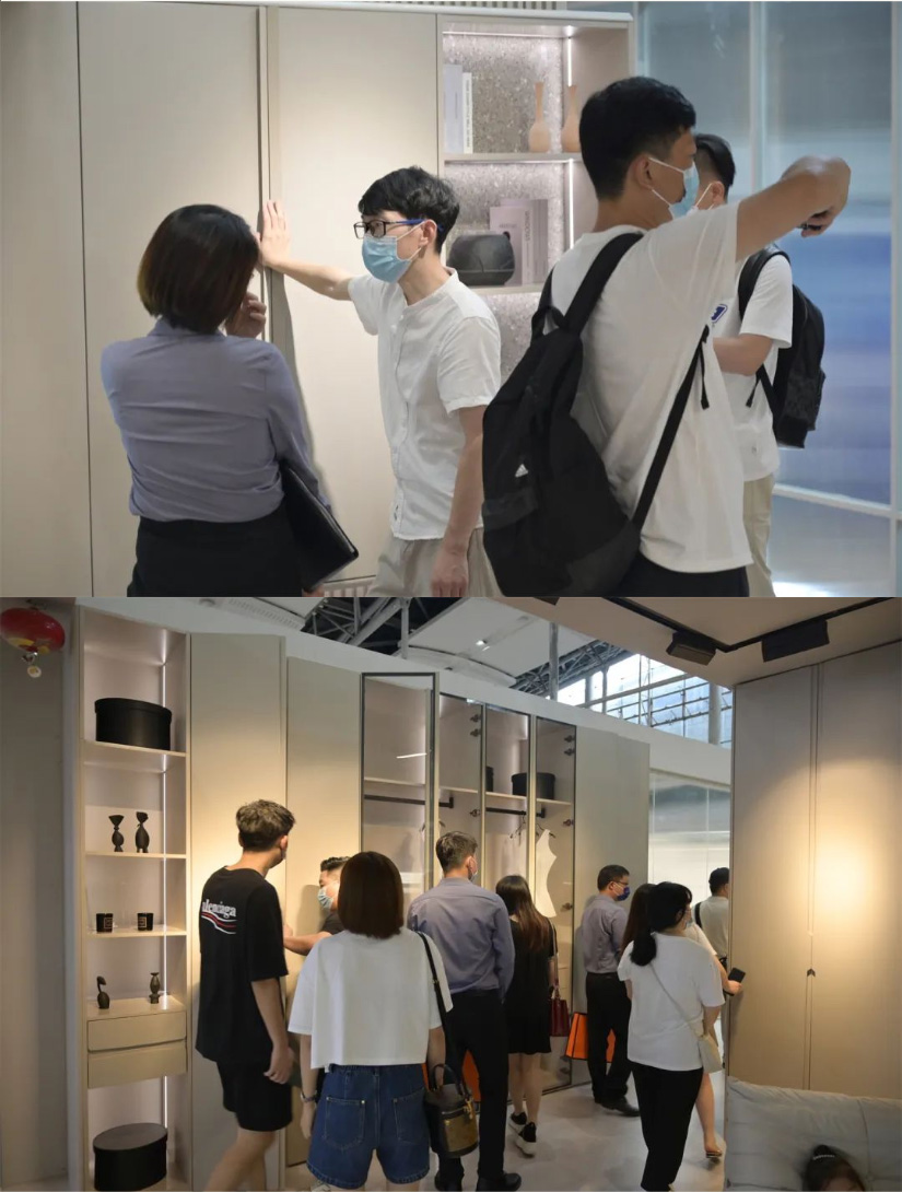 7月10日,火爆的广州建博会再次迎来人潮。近两千家企业同台竞技,精彩纷呈。皇朝定制凭借着超人气新品玛洛系列和高级感满满的展馆设计,吸睛无数,还有潮玩空间趴,人气依旧火爆。
