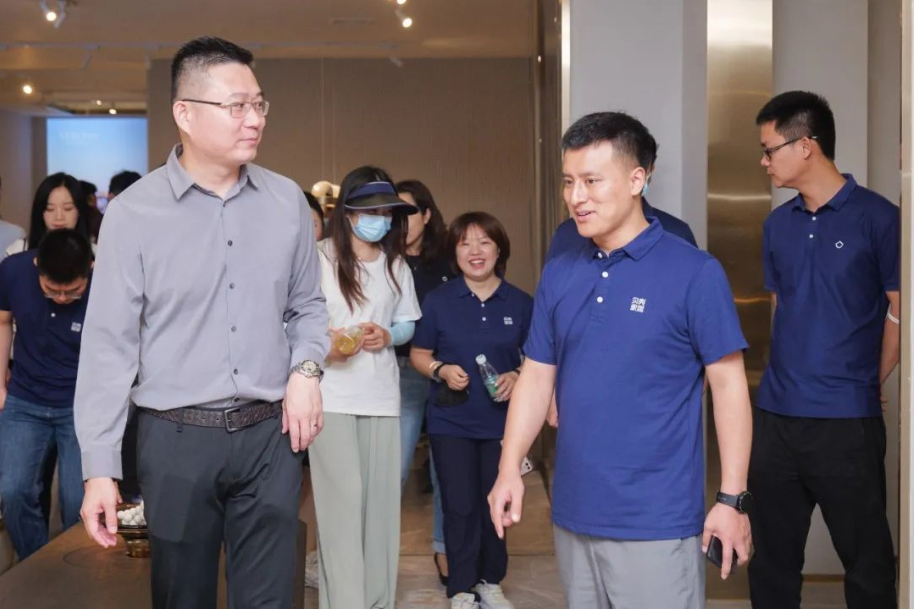 2022年7月15日,贝壳整装大家居广州分公司(下称“贝壳”)总经理李宝先生率团队参访皇朝家居集团总部。皇朝家居大家居业务CEO褚汉青先生携各高管热情接待,并陪同贝壳考察团参观了皇朝家居生活体验展厅。