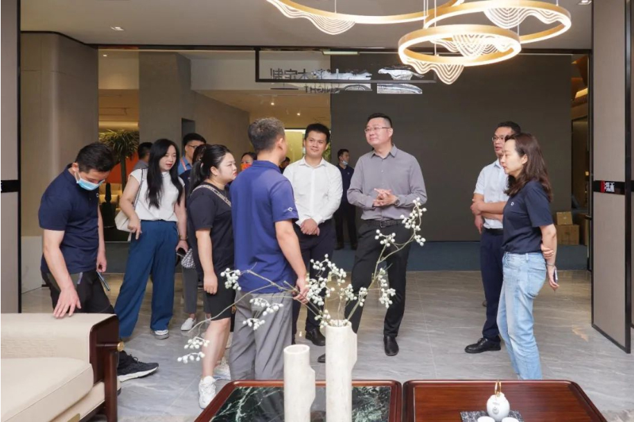 考察团在工作人员的全方位讲解下,对皇朝家居的品牌定位、产品调性和工艺品质有了更清晰直观的认知,并对皇朝极高的设计美学造诣和强大的产品研发能力表示高度肯定。