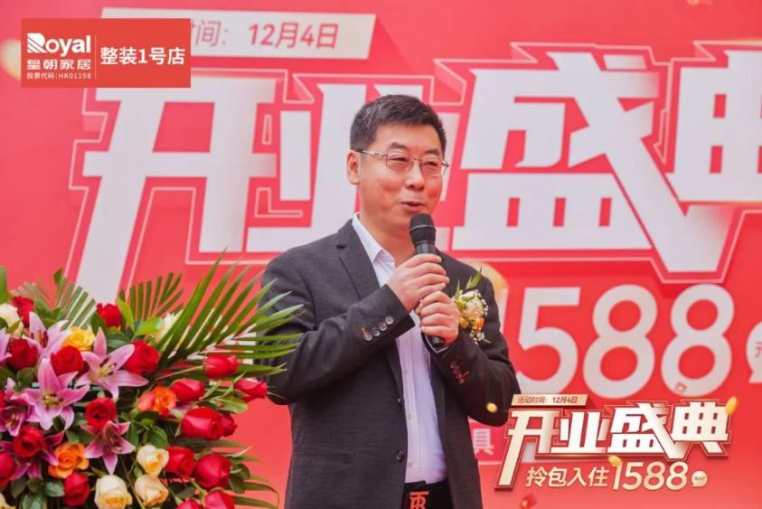 广东省家居业联合会执行主席蒋德辉为本次庆典致辞,为皇朝家居佛山整装1号店开业送上祝福,对皇朝在行业内的成绩给予了充分的肯定,并对佛山乐从店未来的发展寄予了殷切的期盼。