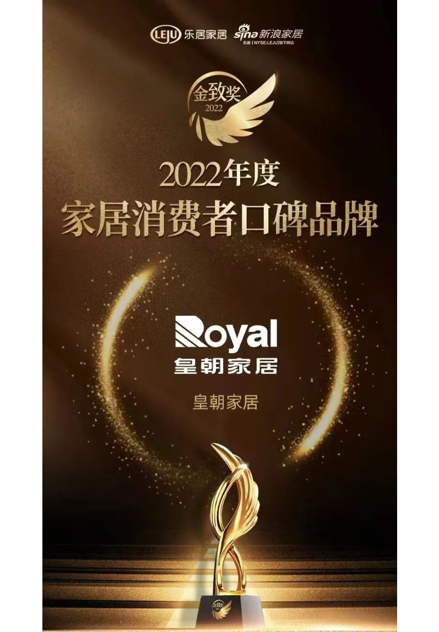 皇朝家居凭借卓越的品牌表现斩获消费者口碑品牌称号,以高质产品和优质服务获得消费者广泛认可,从众多企业中脱颖而出,荣登“2022家居消费者口碑品牌榜”。