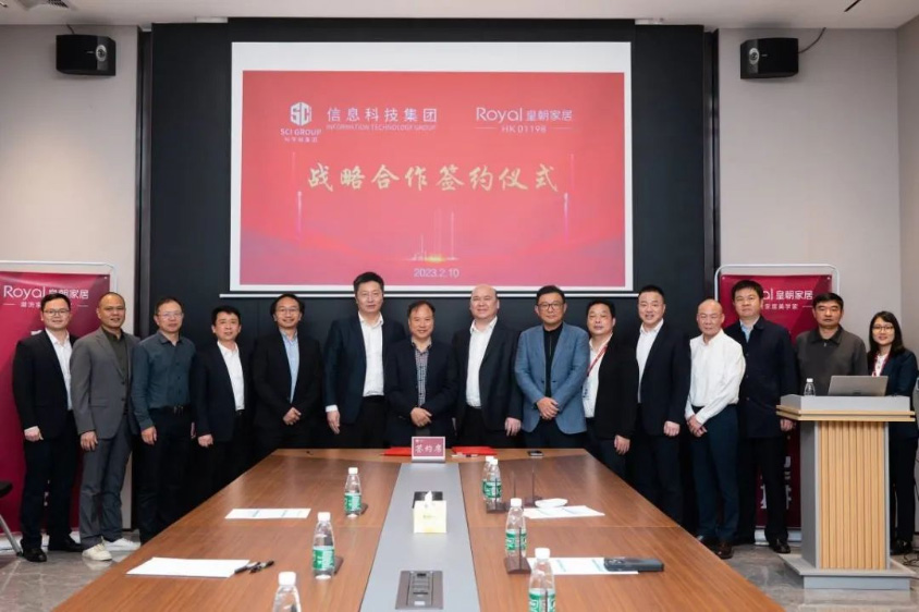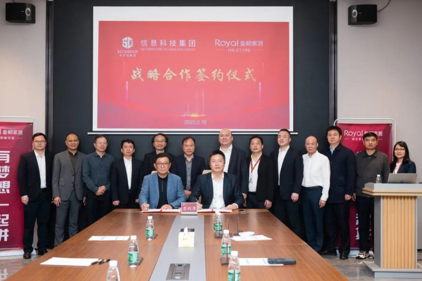 2023年2月10日上午,皇朝家居集团与科学城(广州)信息科技集团有限公司(以下简称“信科集团”)在增城区皇朝集团举行战略合作签约仪式,双方约定将在智能家居、智慧基地、智慧园区、家装工装、渠道和资源等方面进行全方位的战略合作,推动数字经济与实体经济相融合。科学城集团党委委员、总经理助理、信科集团董事长吴中明,信科集团总经理曹溪,皇朝家居董事会主席谢锦鹏,皇朝家居执行董事、首席执行官杨俊等领导参加会谈并见证签约。