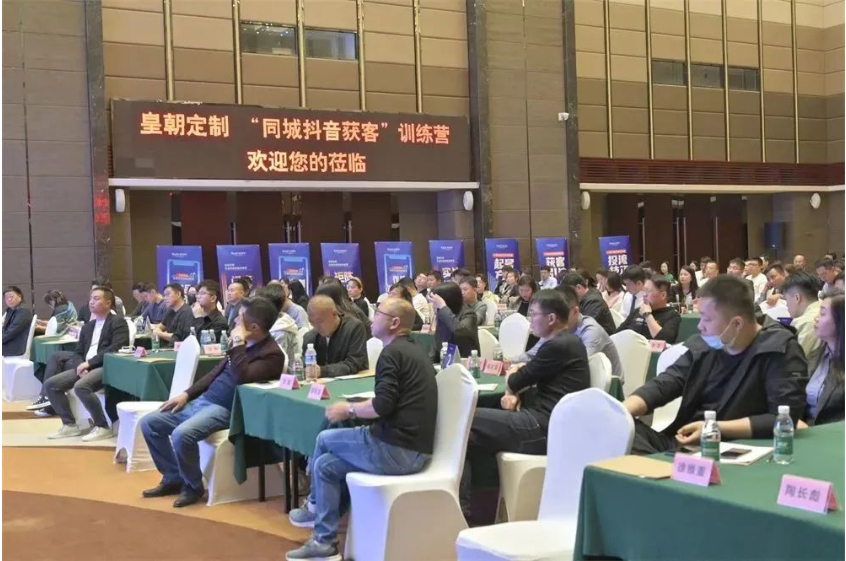 皇朝定制“同城抖音获客”特训营正式开训,来自各地的皇朝定制的经销商以及青睐皇朝定制的建材行业精英们齐聚一堂参训。皇朝定制董事长陈浩先生携品牌高层领导共同出席参与。