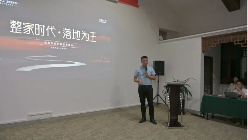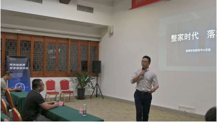 皇朝定制招商总监陈杰先生为本次大会致辞,并为现场嘉宾介绍介绍了皇朝定制整家创富项目魅力所在。