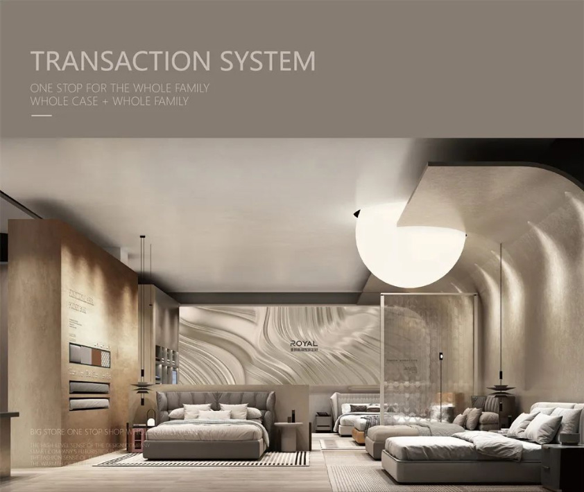 生活馆的门面设计、产品陈列展示、店面吸引力、入口导引、窗户和橱窗设计以及标识导航等全新设计,融入到全新的店系统。皇朝高端定制生活馆通过吸引人的外观设计、突出产品特色陈列和展示,以及明确的导引和标识,商业空间能够有效地引导顾客进入店内。