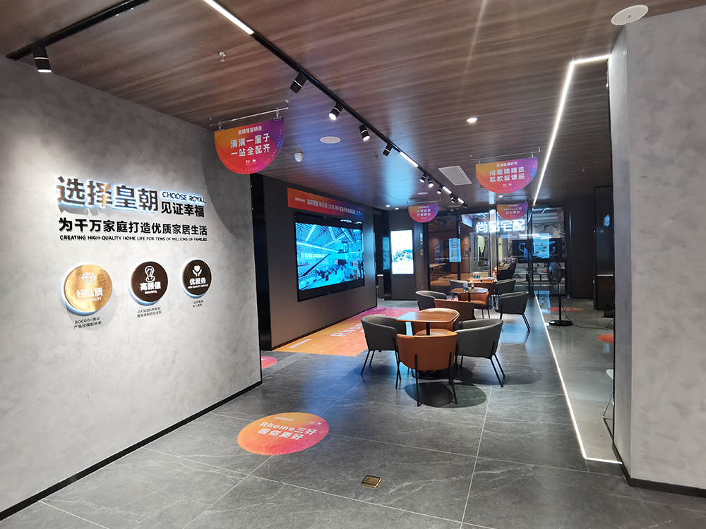 其次,留店系统着眼于创造舒适的环境和体验,使顾客留在店内更长时间。以用户认知为导向设计,动线清晰简约。品牌区——设计区——选样区——样板区——产品展示区等等。从外立面店态入店系统,到动线引导,可以提高顾客的入店率和留店率。接待区,设置专门的区域,展示皇朝家居的品牌历程、荣誉和成就,让消费者对品牌的发展历程有更深入的了解和认知。整个门店采用清晰简约的动线设计,使消费者能够轻松自然地流动,便捷地浏览不同的产品展示区域。