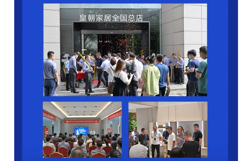 皇朝高端整家定制携2023年春季新品皇慢亮相广州定制家居展。新品[皇慢]系列采用行业鲜见影木实木手工贴皮包覆,三底两面的肤感漆工艺,特有的立体交叉纹和拼花木纹通过3D数码打印技术展现。同月召开以“聚势启新 共赢未来”为主题的“破圈”春季战略,线上直播发布会,聚焦终端渠道革新,打造全新营销模式,为终端门店赢战2023加码赋能。