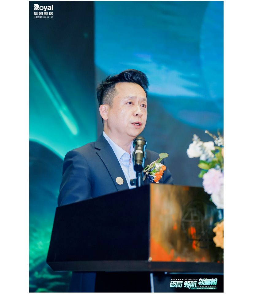 皇朝大家居招商总监陈杰深入分析了当前市场形势和竞争环境,并在此基础上公布了皇朝家居2024年营销战略规划和渠道拓展政策。陈总强调,未来三年,皇朝家居将持续推动全案战略,以定制为核心,打造全案融合店态,致力于提供符合市场需求的服务能力,满足消费者需求,为皇朝品牌服务商创造广阔的发展空间,共同开启破局、领航的新时代。