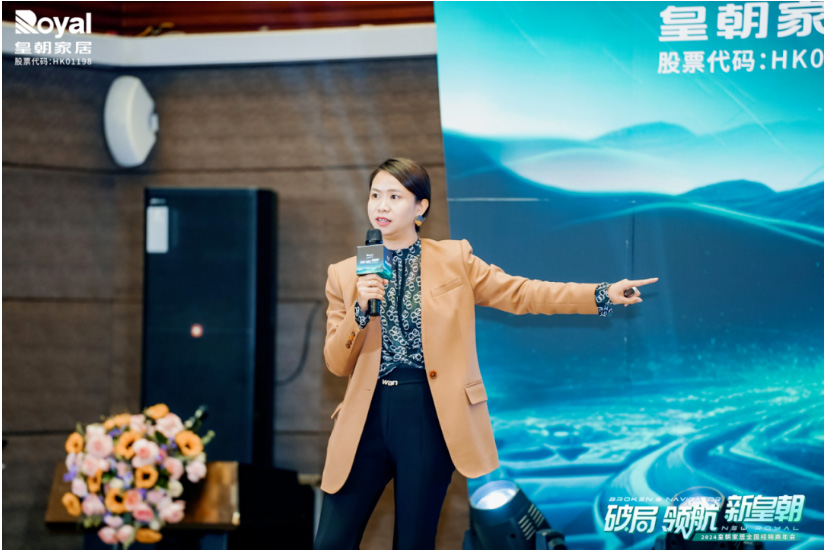 大会伊始,皇朝集团董事、COO 陶颖致开幕词,首先对与会嘉宾的到来表示热烈的欢迎和衷心的感谢,并围绕大会主题“破局 领航 新皇朝”展开了分享,明确了集团的战略方向。陶总表示,2024年,期待携手广大经销商伙伴,持续深化合作机制,共享资源、共谋发展。