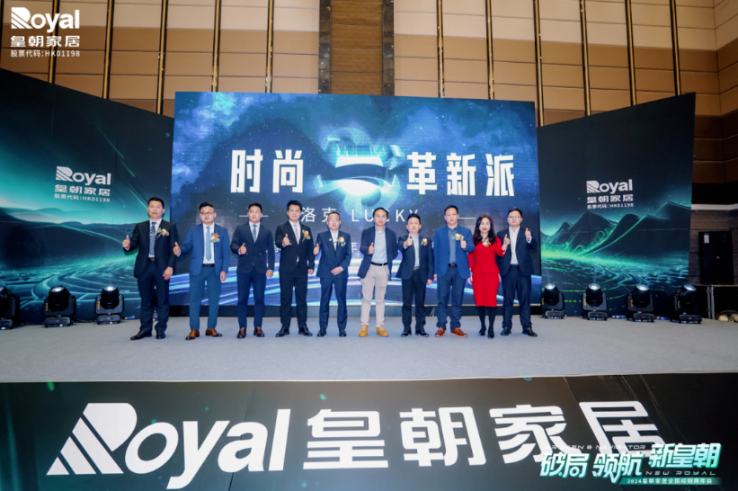 大会现场,在全体经销商伙伴的见证下,皇朝家居2024年洛克新品全球首发仪式圆满礼成。