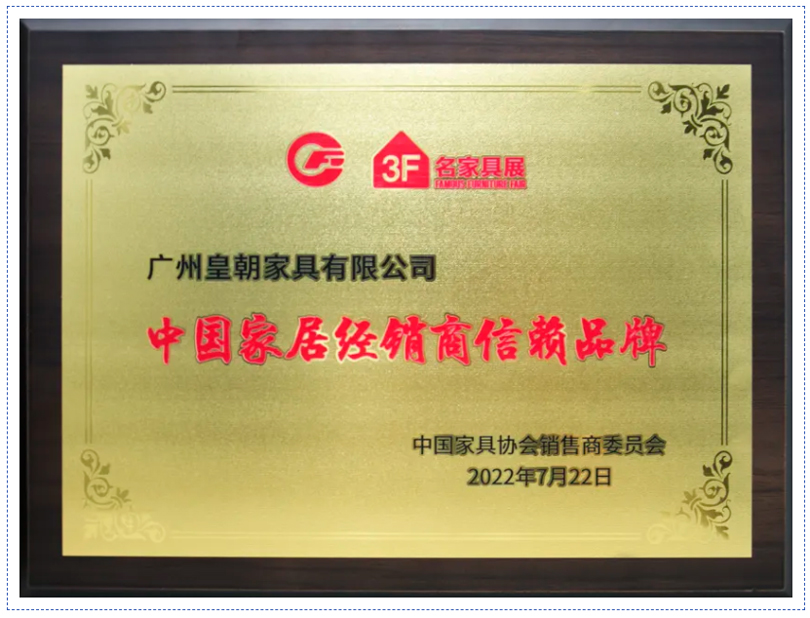 皇朝家居拥有约2000家线下门店,以用户为中心,逾二十年服务万家。从售前到售后,皇朝坚持人本服务,将服务方式标准化、规范化,深受客户、合作伙伴及业界的信任和好评,荣膺“消费者喜爱品牌”、“中国家居经销商信赖品牌”、“中国(行业)信赖品牌”等多项荣誉。