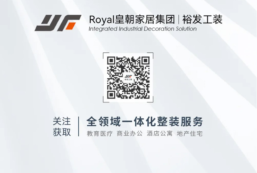 裕发工装为皇朝家居旗下家具工程品牌,以皇朝强大的柔性化制造系统和全屋定制精装实力为保障,为政企客户提供设计、施工、服务一体化的全案空间解决方案。