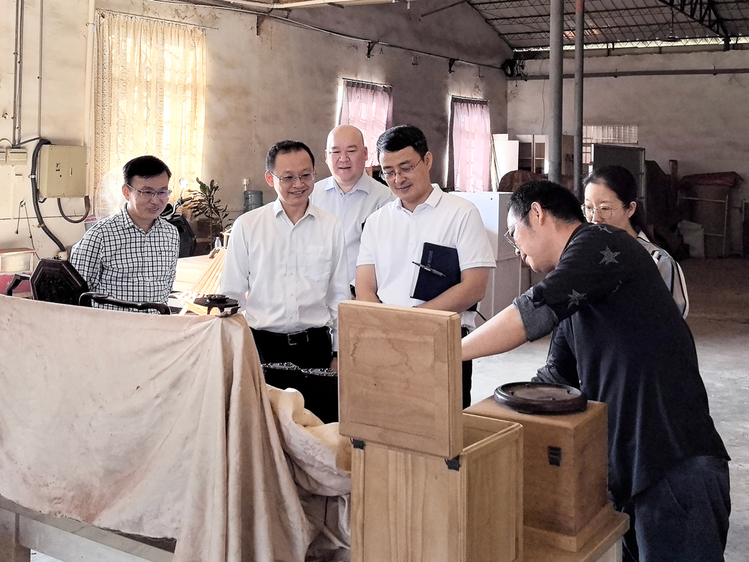 汤克明局长一行首先参观了皇朝家居增城仙村园区的木制品基地、饶宗颐学术艺术馆,详细了解皇朝家居木制产品的原材料供应情况及制作情况,并对园区内安全生产责任落实情况做出重要指示。