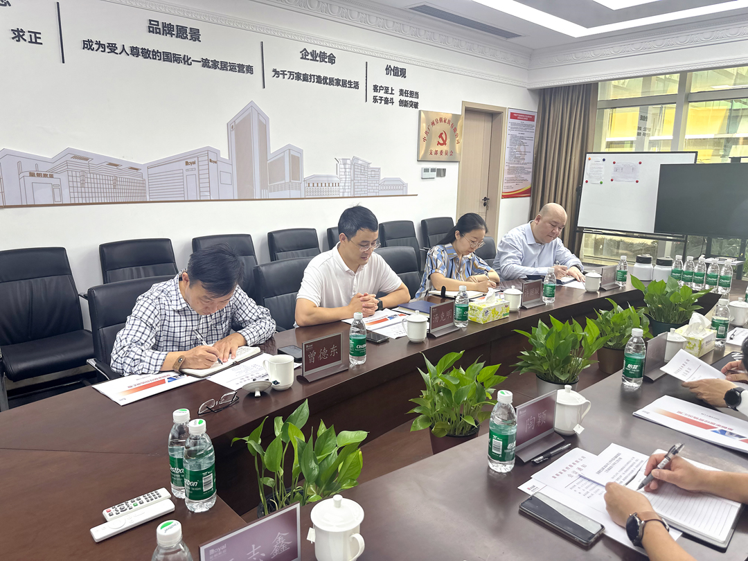为进一步促进国有企业高质量发展,2024年11月12日上午,广州开发区国资局党组书记、局长汤克明、统评考核科科长曾德东及党建工作科科长许丽璇一行莅临皇朝家居调研指导工作。科学城集团党委委员、总经理助理吴中明陪同,皇朝家居董事长、首席执行官林如海,首席运营官陶颖,副总经理杨莹、汪志鑫,财务总监吴馨参加此次调研。
