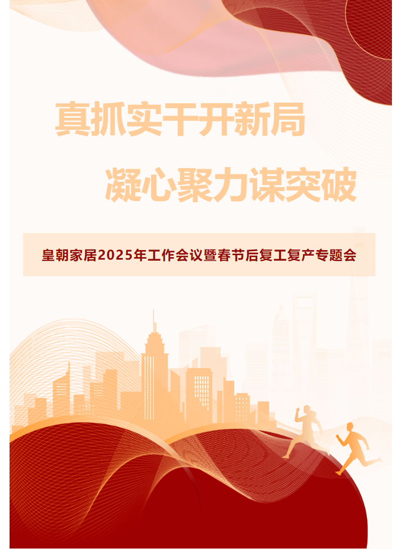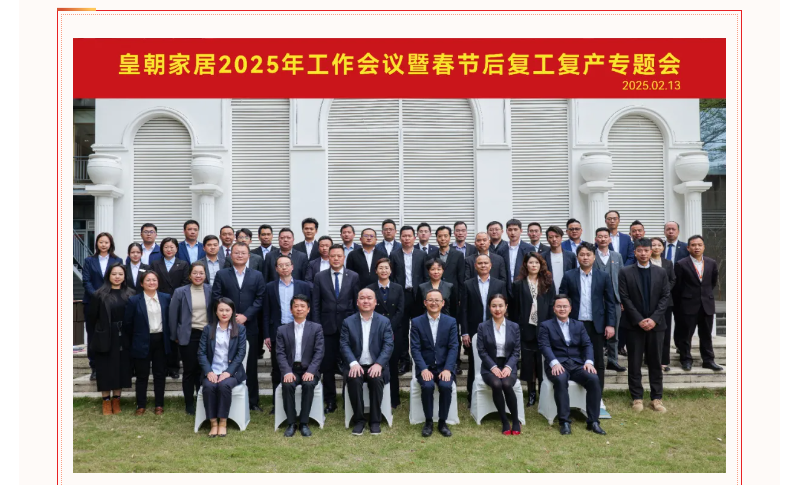 新的一年,新的征程,皇朝家居全体上下将紧密围绕集团发展目标,以更加昂扬的拼搏精神和真抓实干的工作作风,扎实有序推进各项重点工作落实落细,凝心聚力推动谱写高质量发展新篇章!