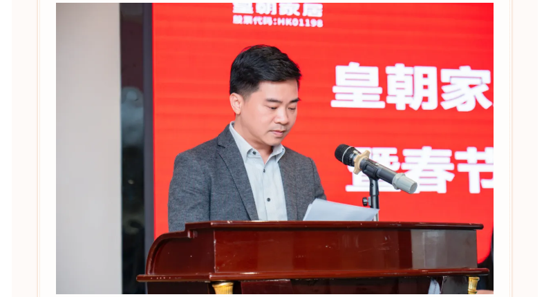 随后,皇朝家居党支部书记、董事会主席(董事长)兼首席执行官林如海作2024年工作报告。过去一年,面对纷繁复杂的市场环境,皇朝家居全体员工心往一处想,劲儿往一处使,一路咬牙坚持,克服了数不清的难题,取得了不起的成绩。实现了连续3年上榜《中国500最具价值品牌》、落地由中国工程院院士孟建民领衔的微空间项目。