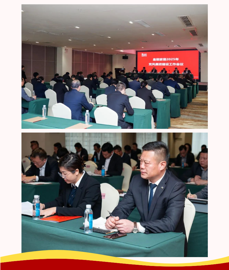 2月13日,皇朝家居党支部召开2025年党风廉政建设工作会议。会议以习近平新时代中国特色社会主义思想为指导,全面贯彻二十届中央纪委四次全会部署,认真落实科学城集团2025年党风廉政建设工作会议精神,系统总结皇朝家居2024年党风廉政建设工作,统筹部署2025年重点工作任务。科学城集团总经理助理、皇朝家居分管领导吴中明出席会议,皇朝家居领导班子、中层领导干部参会。