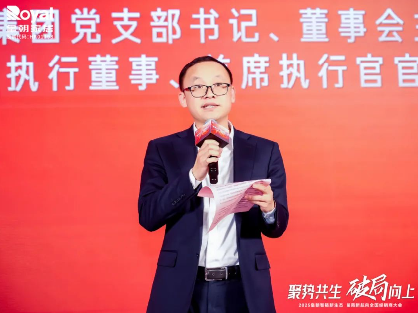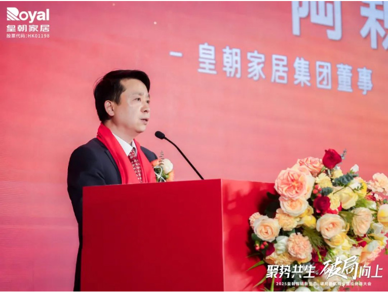 陶总指出,新形势、新环境下,皇朝家居将进一步推动产品迭代与渠道融合,通过数字化工具强化终端赋能,为经销商注入破局方法论,共同开创家居行业新格局。他呼吁,全体皇朝人要团结拼搏、赢战市场,坚定增长决心,在崭新征程中再创新辉煌!