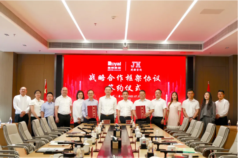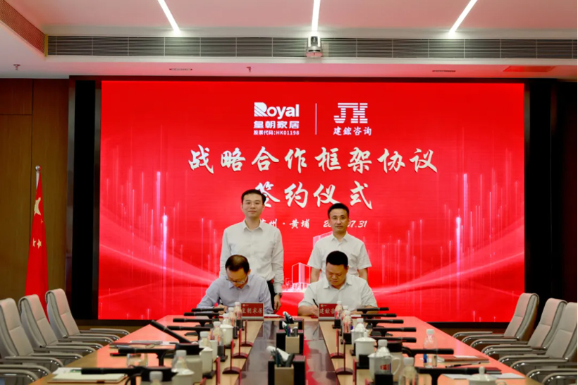 7月31日,皇朝家居与广州市建鋐建筑技术咨询有限公司(以下简称“建鋐咨询”)在科学城集团总部举行战略合作签约仪式。双方将以优势互补、资源共享为基础,在项目开拓、技术应用等方面深化合作。