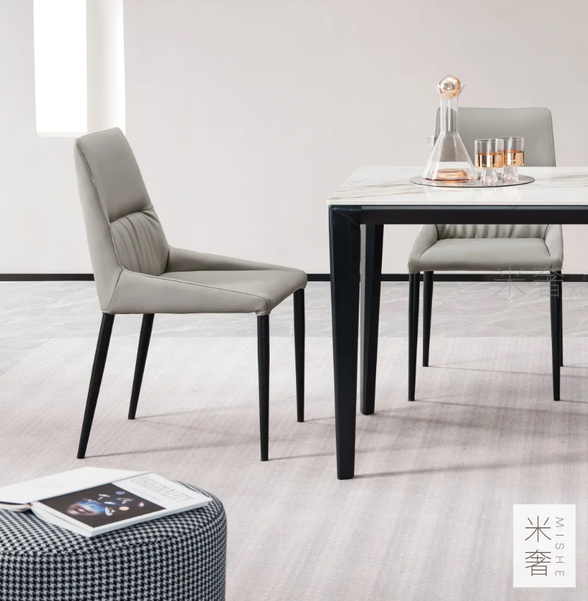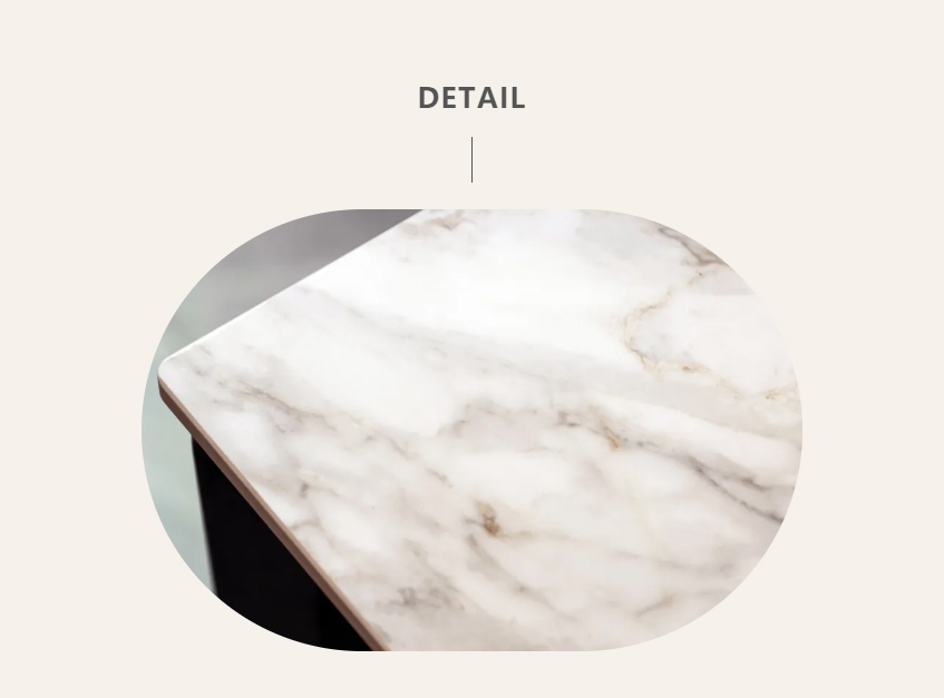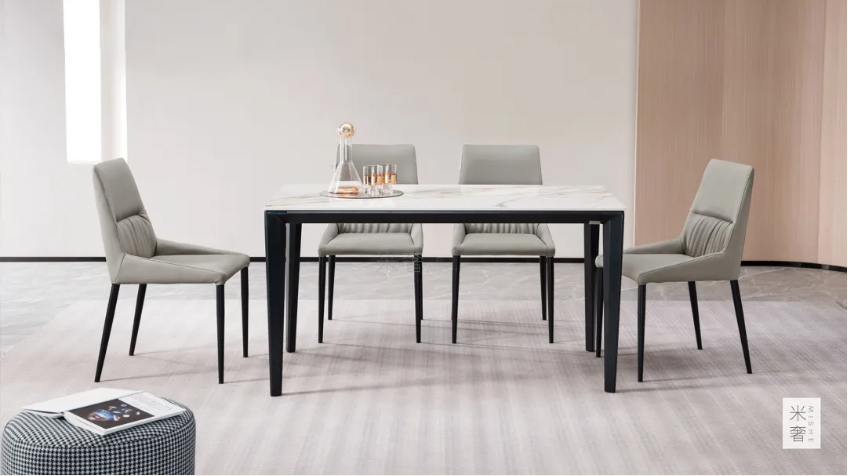 岩板具有耐高温、耐腐蚀、耐刮磨、易清洁的特点,兼具美感与实用性。用于餐桌上,摆脱了传统家具的厚重感,使原本简洁的空间富有温度。