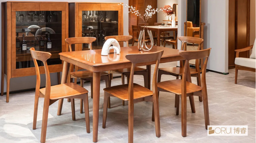 桌面经过多次打磨、抛光,触摸平滑,手感温润,营造出温馨愉快的用餐环境,而桌角的曲线造型,更是给餐厅空间增添几分灵动之美。