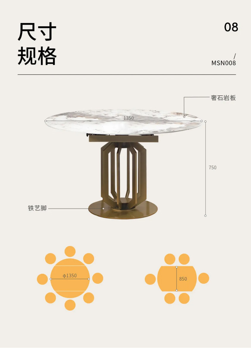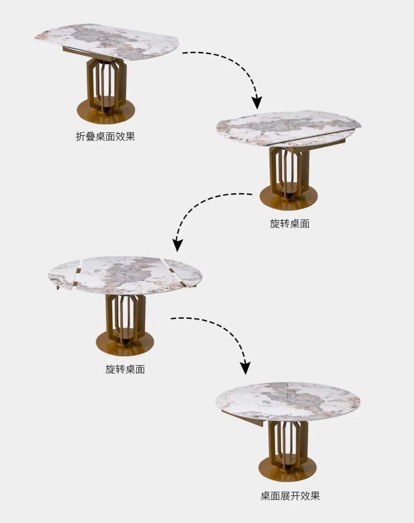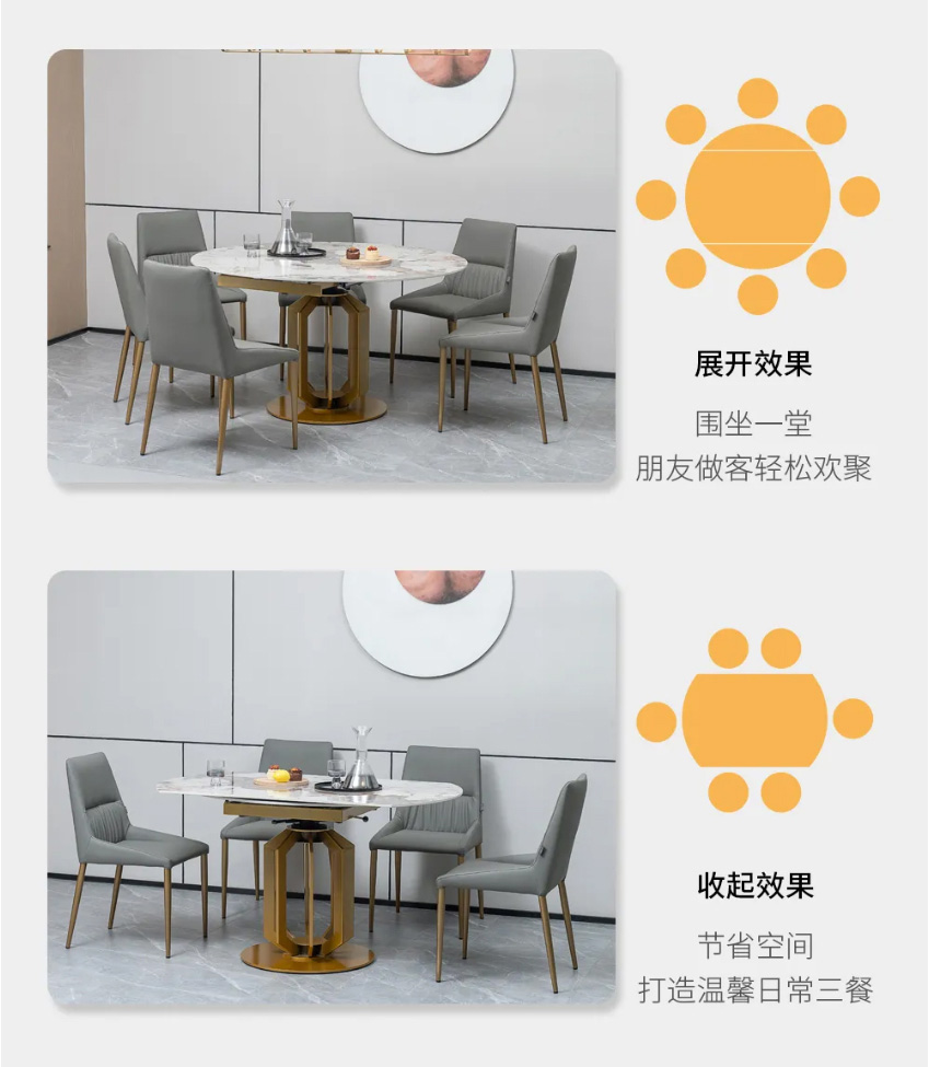 平时可满足4-6人用餐,伸展后可满足6-8人使用需求灵活多用节省空间