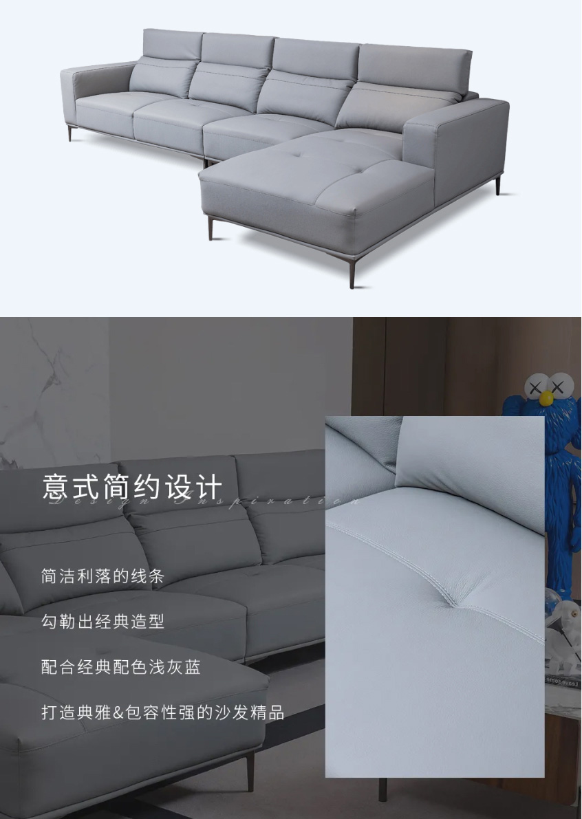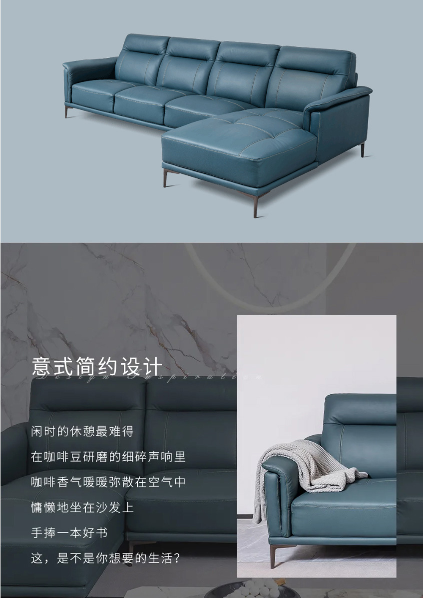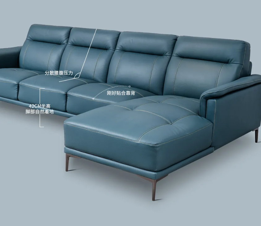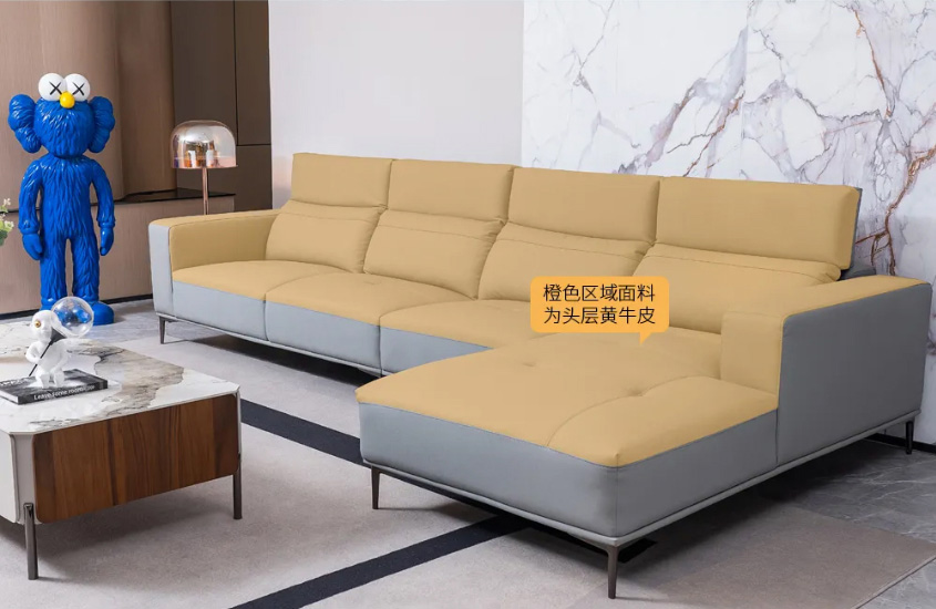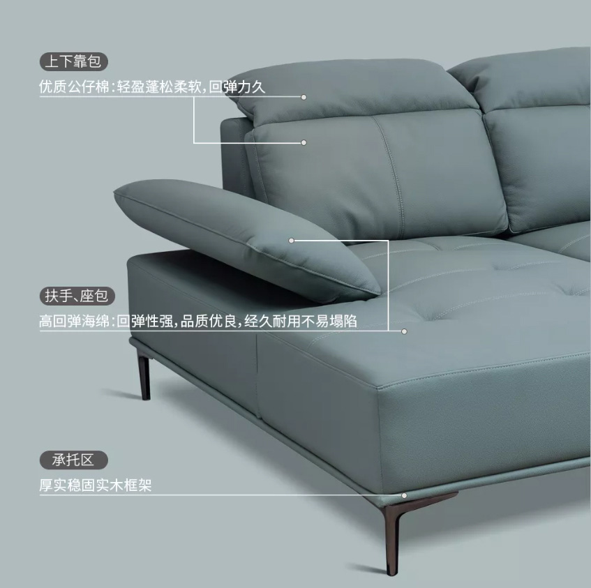 接触面(沙发坐面、靠背面、扶手内侧面)为头层黄牛皮,打造全方位的舒适触感。