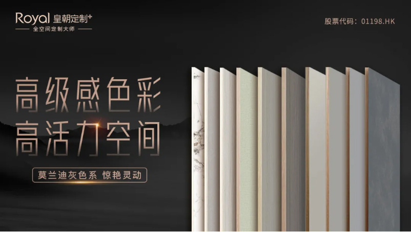 继10月推出的18款新花色后,皇朝定制再次推出新花色,以“高级·灰色系”为主,推出共10款莫兰迪灰色系的新花色以及一款岩板花色。
