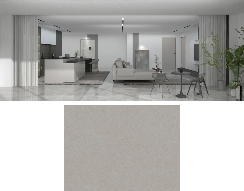 灰色中带点金色调,整体看上去十分柔和,且这款花色还带了若隐若现的木材纹理。