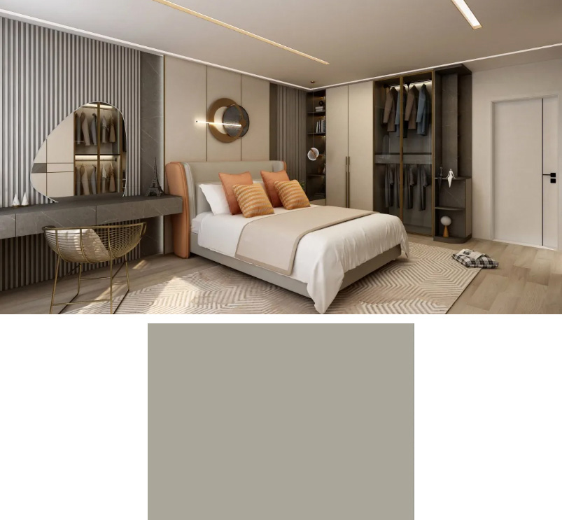 灰绿色能给人一种舒缓的氛围感,是接近自然的色彩,使空间色调更加舒适养眼。