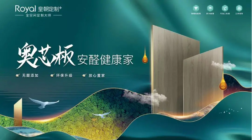 拒绝甲醛,打造健康空间,皇朝定制作为家居行业的明星品牌,推出的奥芯板,在甲醛释放量≤0.02mg/m³的要求下,未检出甲醛,达到Enf环保等级标准!
