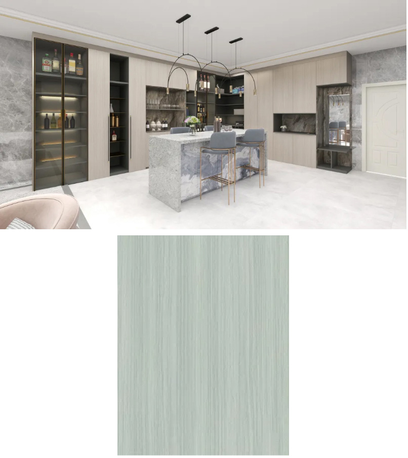 灰青针叶花色不仅有着自然的纹理,灯光打在门板上还能有一种波光粼粼的效果。