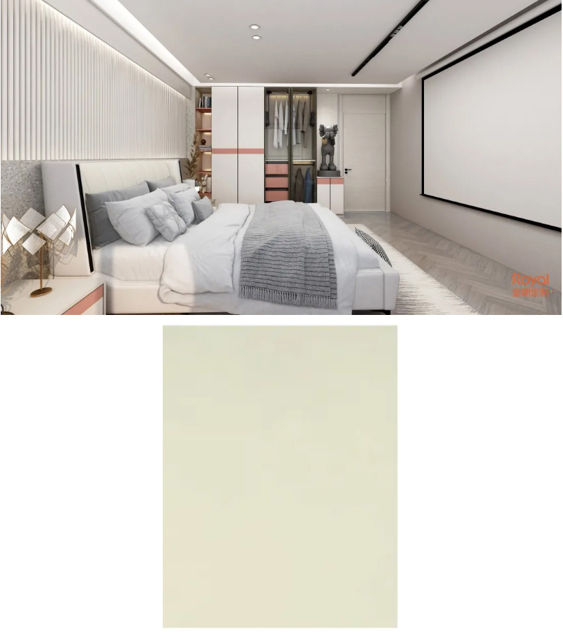 白色是空间设计的基础色,百搭,而在白色的基础上,这款板材的纹理若隐若现,更能演变出万般变化。