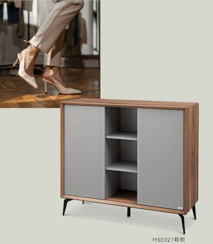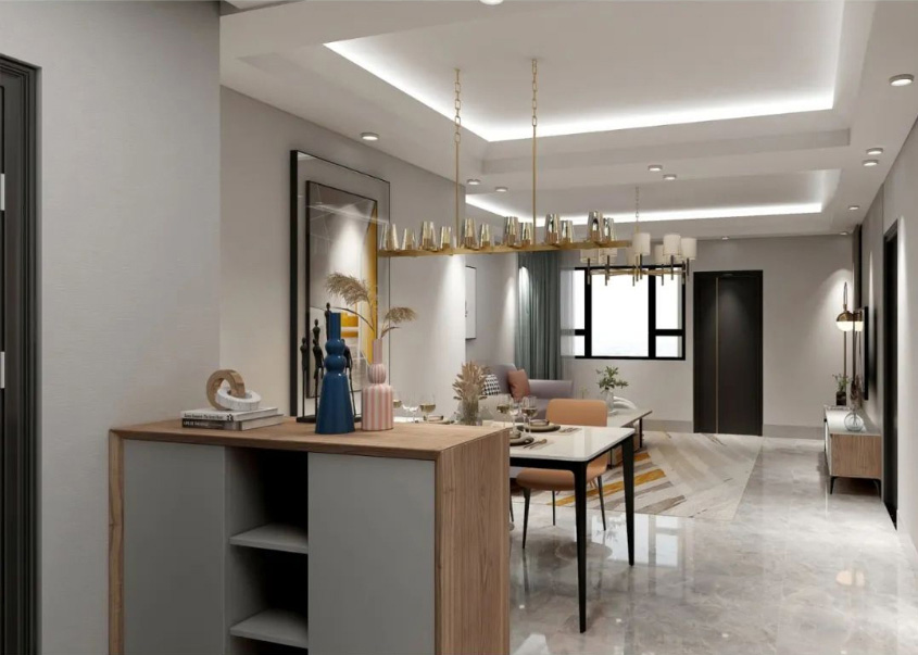 入户空间设计精致简约,进门处的鞋柜起到隔断空间的作用,又可以收纳雨伞、快递等杂物,玄关区想乱都难。