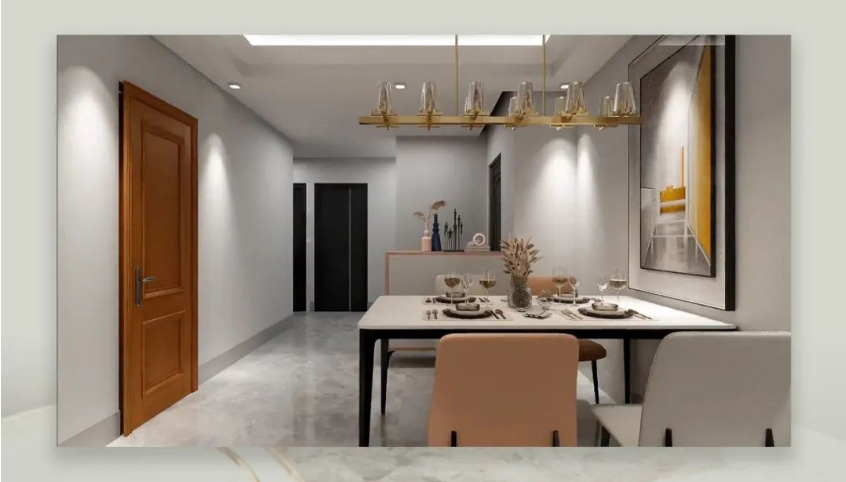 岩板餐桌更显品质,而座椅的冷暖色调点缀了空间。