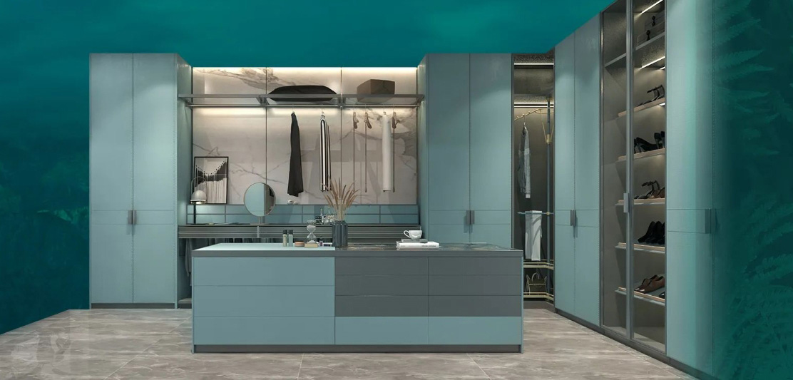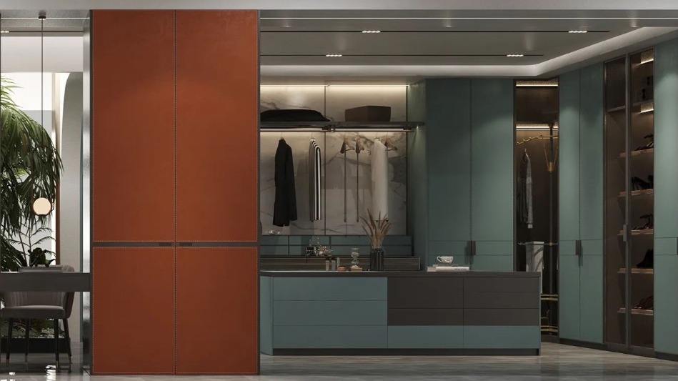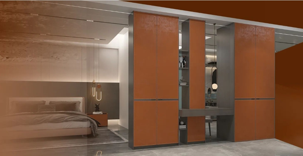 一门到顶衣柜与梳妆台的一体式设计