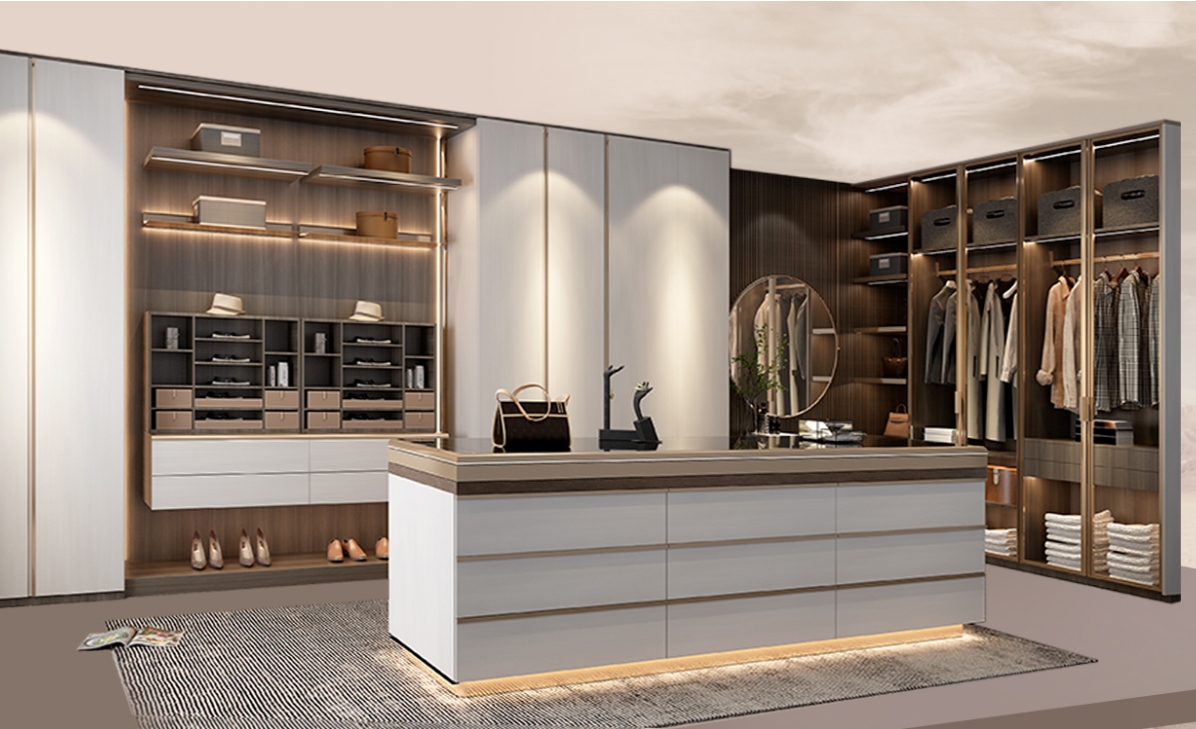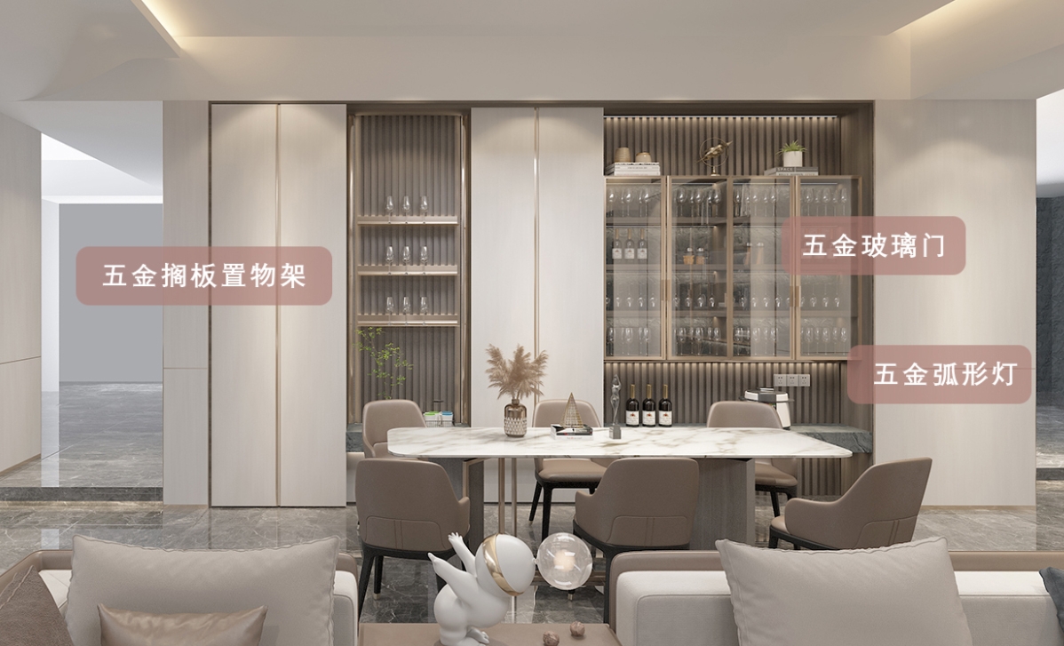新开发功能五金弧形灯、弧形搁板架,可使用于大型开放架和层板夹层以,让设计更有层次感。