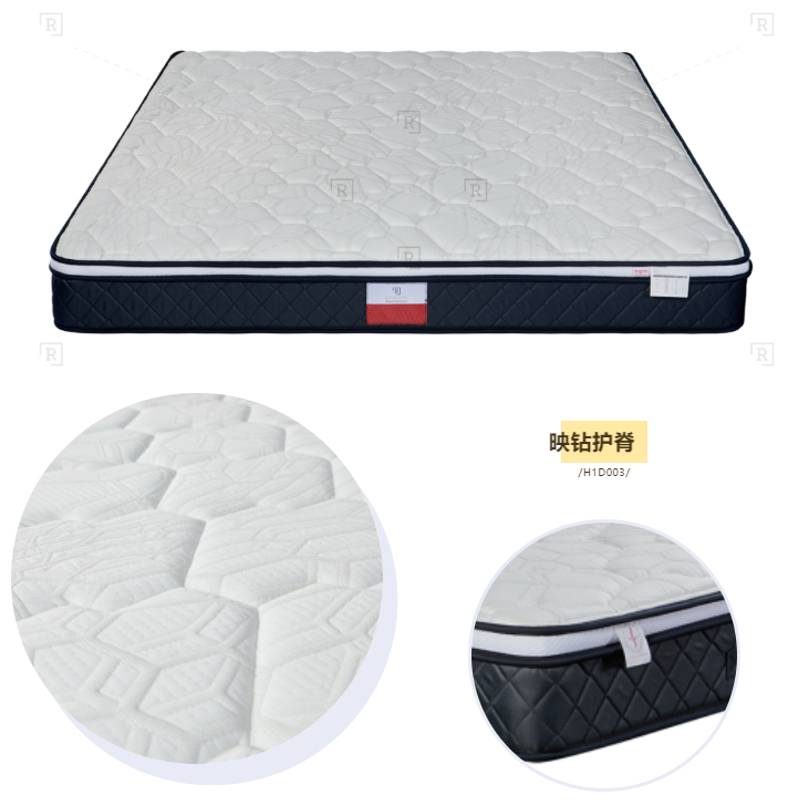 映钻护脊(H1D003)拥有香港护脊认证,能够为腰背部提供有力支撑;另外真空天然乳胶亦能助力深睡,释放压力。